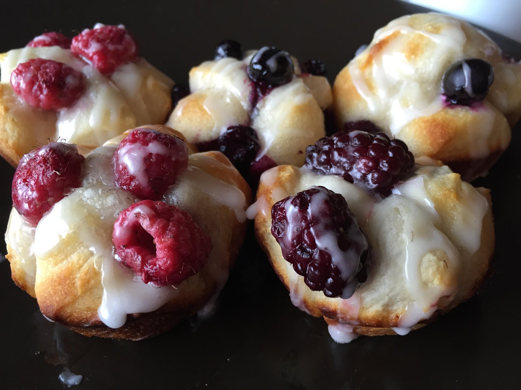 Pull-apart monkey bread-style muffins loaded with fresh fruit and drizzled in a sweet lemon glaze are the perfect start to your morning!