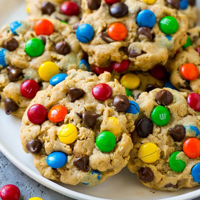 These monster cookies are soft and chewy peanut butter oatmeal cookies loaded with chocolate chips and M&M's. An easy and classic cookie that's perfect for parties, after school snacks and special occasions.