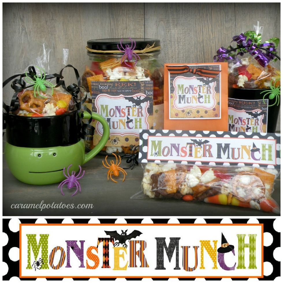 Monster Munch is a fun way to say Happy Halloween to all your “ghoul” friends, little “munchkins”, or any other “fiendish” fellows you’d like to share a treat with! {Don’t forget about the “You’ve Been Booed” game that will start soon in your neighborhood. } The fun thing is you can make the Monster Munch out of anything you want.