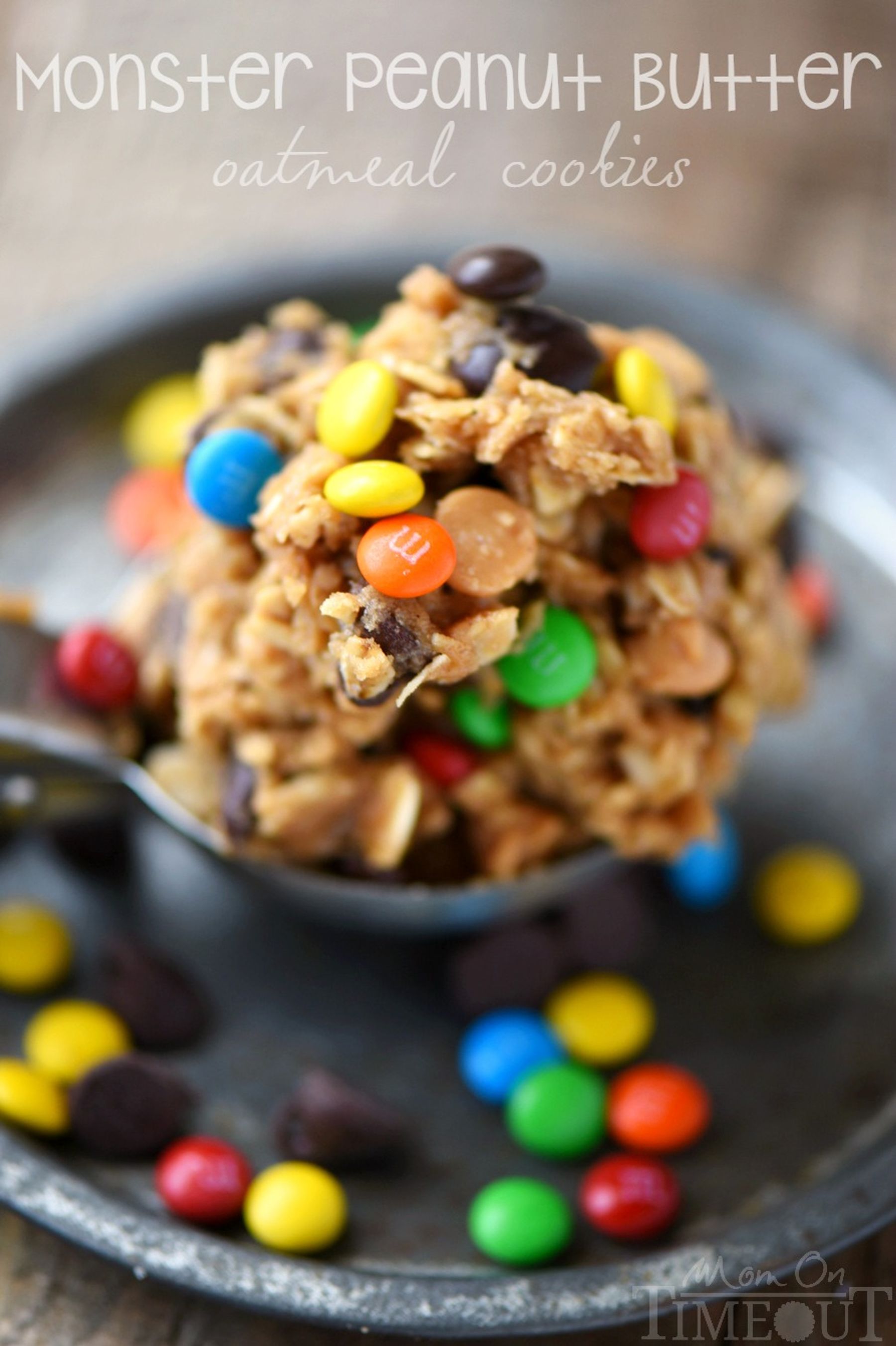 These Monster Peanut Butter Oatmeal Cookies have it ALL! Each bite is filled with chewy oats, peanut butter, chocolate chips and M&M’s! Truly the perfect cookie!