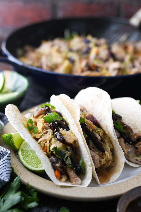 Whip up your favorite Chinese take-out dish at home with this quick and easy Moo Shu Pork recipe! Thin strips of stir-fried pork tenderloin, shredded cabbage, mushrooms and eggs come together in a sweet-and-savory sauce for a simple weeknight dinner that appeals to even the pickiest little eaters. Wrap the moo shu pork with pancakes (or flour tortillas), serve it over a bowl of rice, or enjoy the meat and veggies on their own. The satisfying, flavorful meal is ready in less than 30 minutes!
