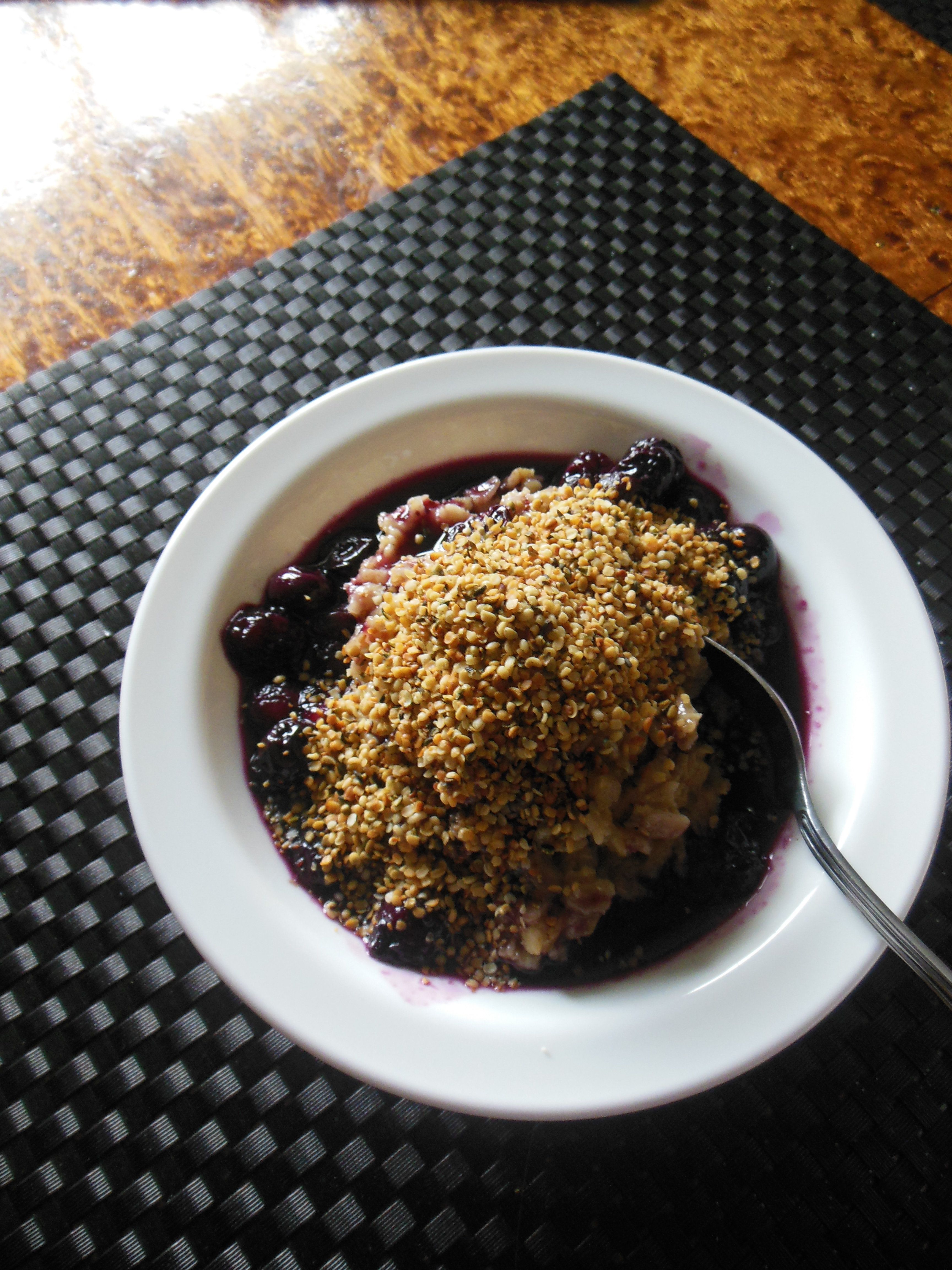 Morning Oats with Blueberry Compote and toasted Hemp Hearts