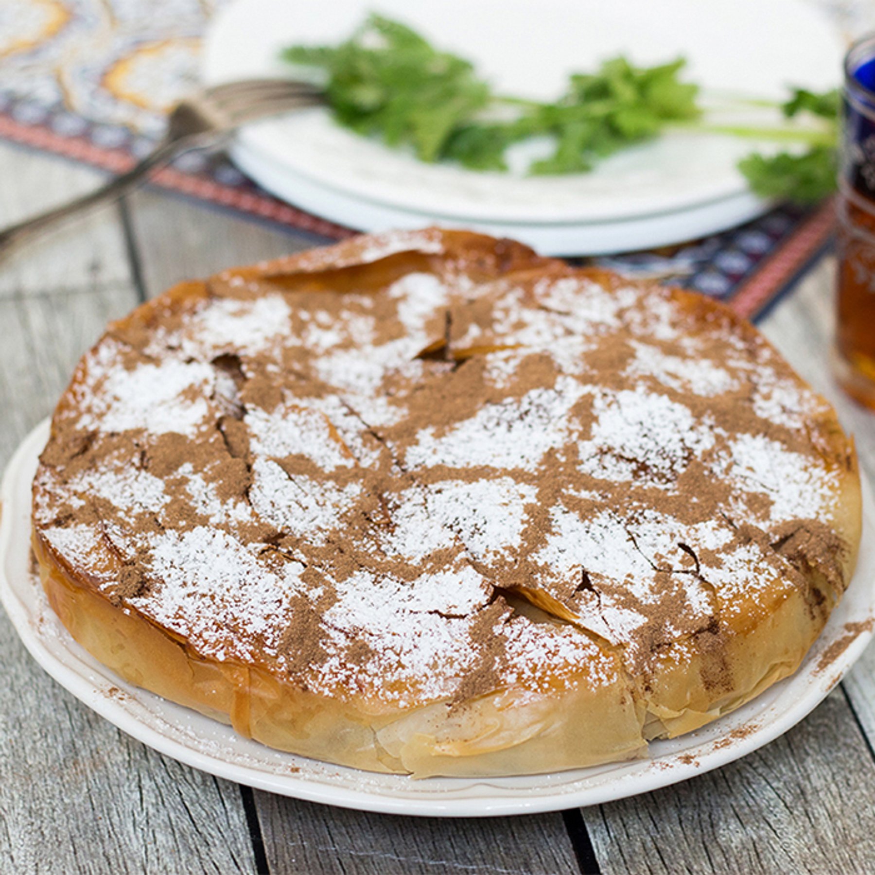 This sweet and savory Moroccan Pie (Pastilla) has a crisp, flaky pastry and a cinnamon flavored chicken, onion, and almond filling inside!
