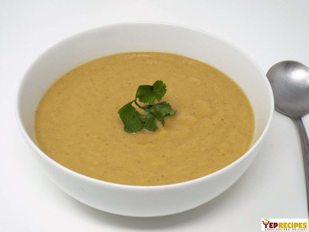 Chickpeas with onion, garlic, and Moroccan spices pureed into a healthy and delicious vegan soup.