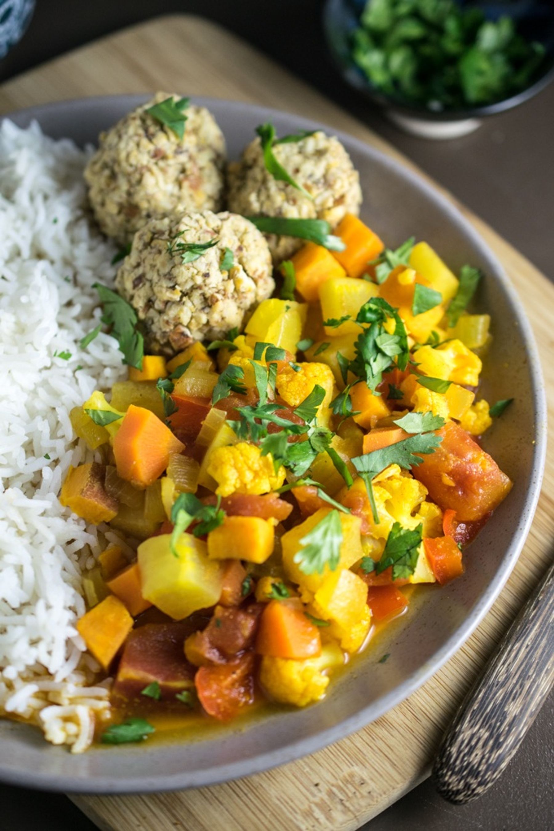 This glowing Moroccan vegetable stew is gently spiced with ginger, turmeric, coriander, and cinnamon, and is a gorgeous way to highlight a vegetable medley.