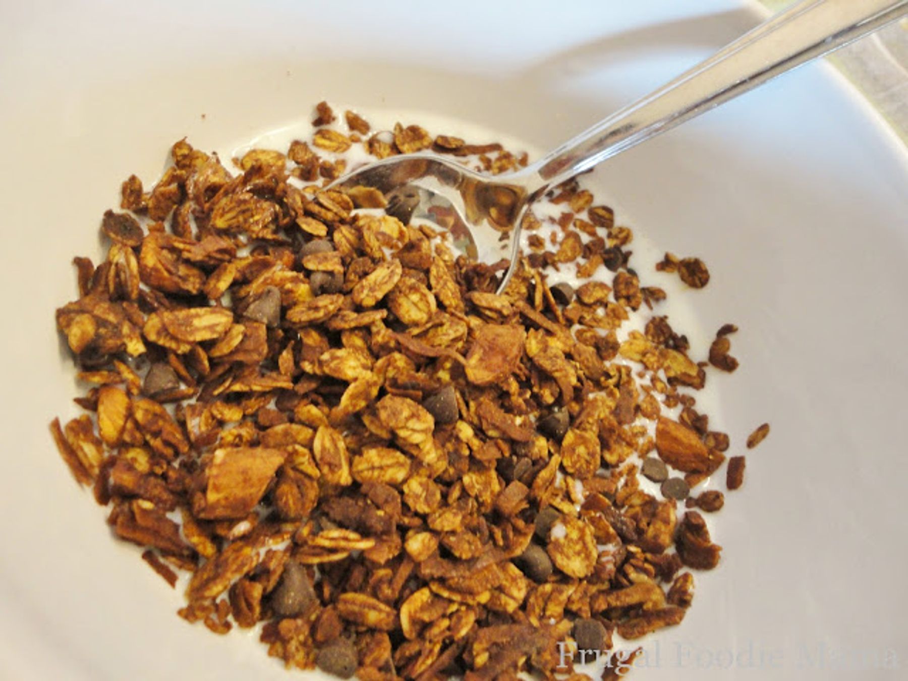 A chocolaty homemade granola combining the tastes of my two favorite candy bars