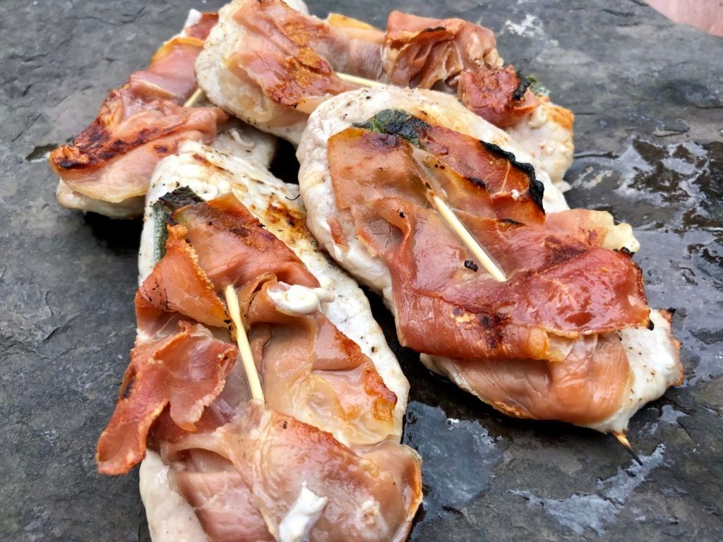 Saltimbocca is Italian for "jumps in your mouth." It's a mouthwatering dish consisting of three ingredients: Veal (or pork), sage, and prosciutto.