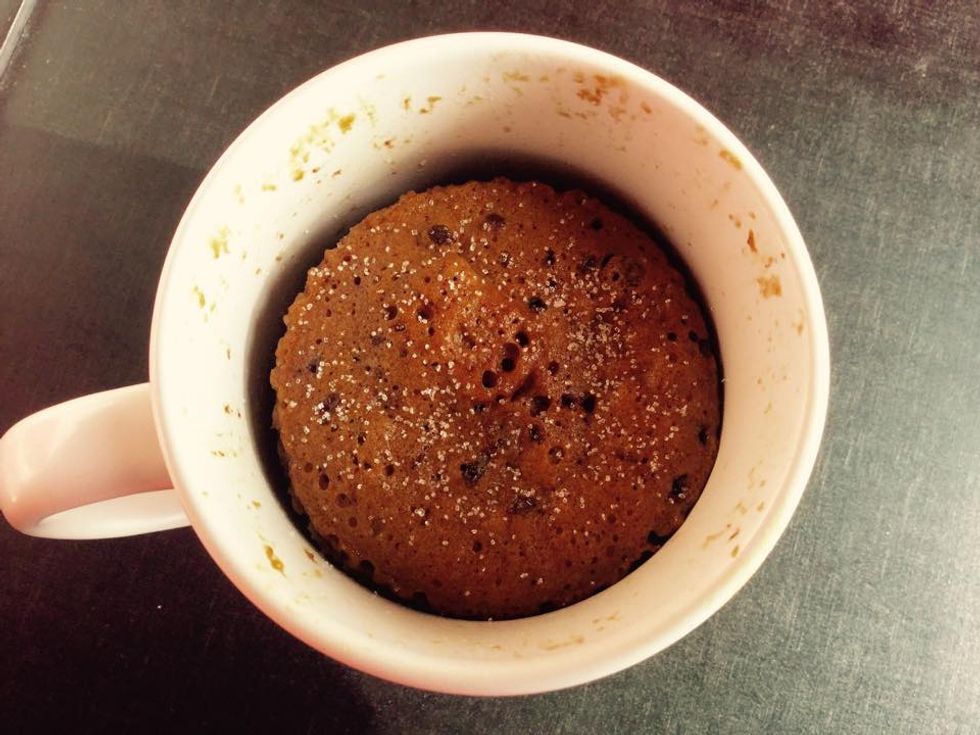 Fastest cake I have ever made! It is ready in less than 2 minutes and is into your stomach in half that time. Healthy cake served in a coffee mug! Perfect Power breakfast.
