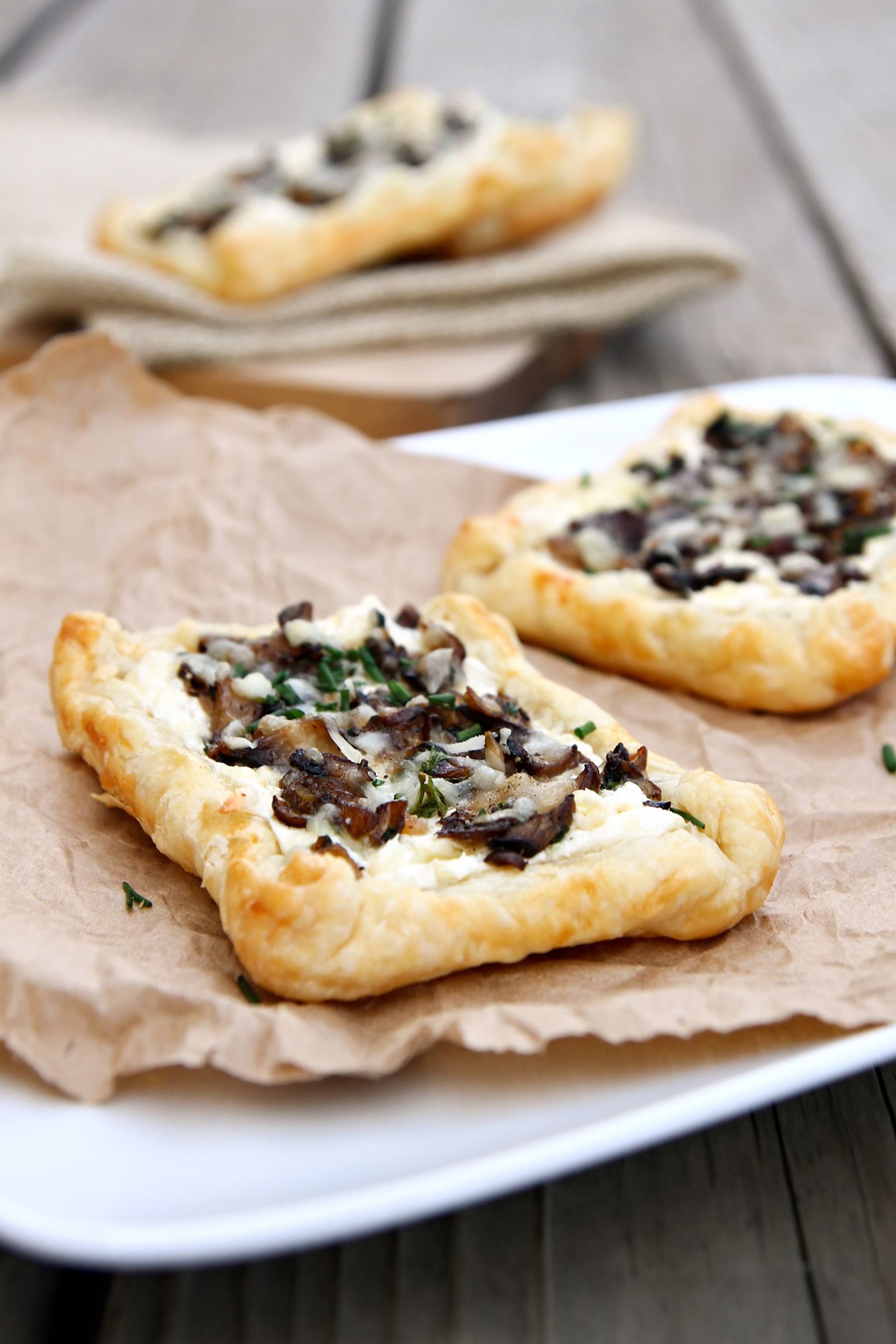 These mushrooms and cheese tartlelettes look and taste impressive, but are easily put together with the help of frozen puff pastry.