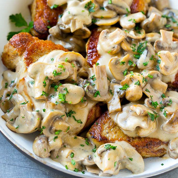 These mushroom pork chops are seared boneless pork chops topped with a creamy mushroom sauce. An easy dinner option that's sure to get rave reviews!
