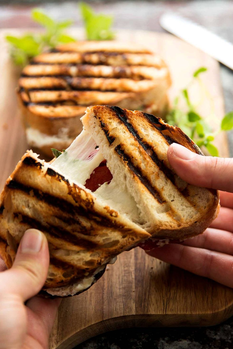 Heat a grilling pan over medium high heat and grill the mushrooms until softened all the way through, about 4 minutes per side. Season with salt & pepper to taste and set aside.