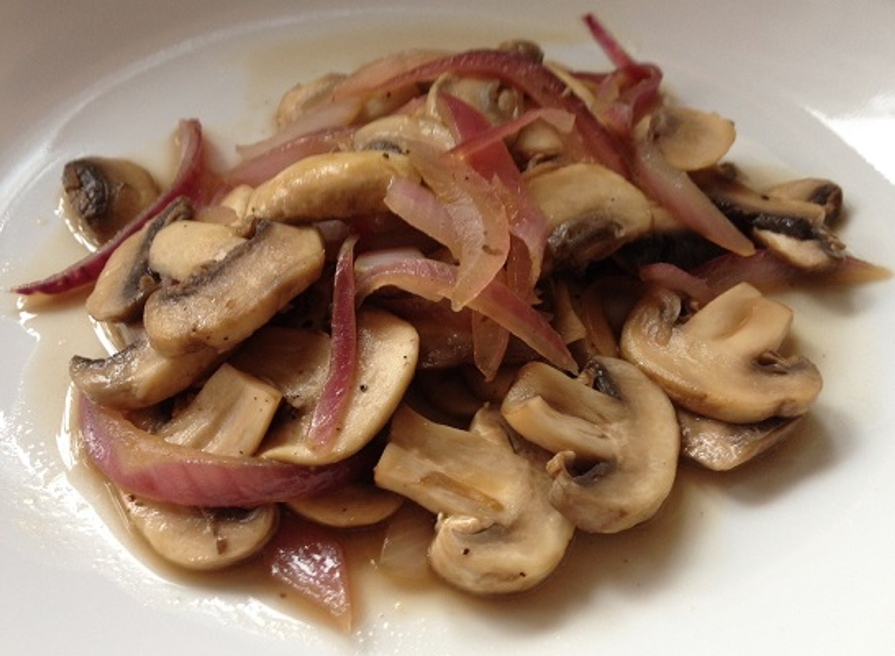 Add button mushroom and red wine vinegar, continue to cook for 3 minutes or until mushroom slices are soft.