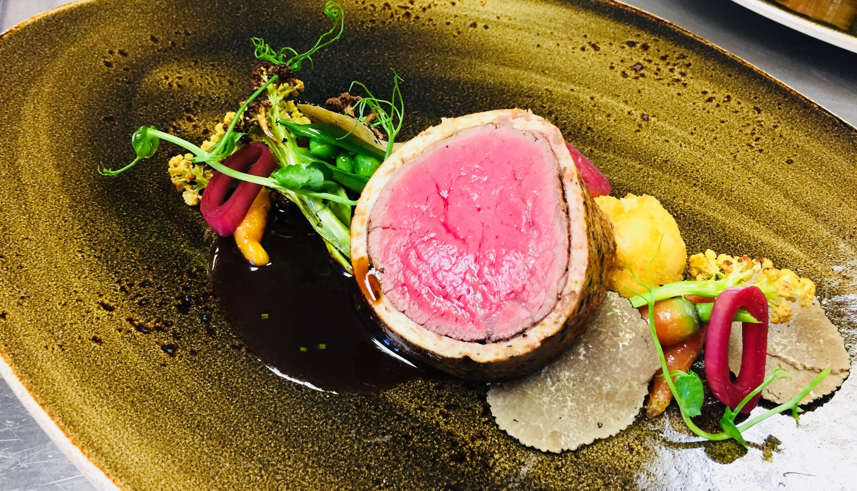 For an elegant meal in the comfort of your own home, we highly recommend this Mushroom Wrapped Wagyu Beef Tenderloin recipe. The Fullblood Wagyu beef tenderloin seared in a cast-iron skillet to a medium-rare finish. The tender beef is layered on cooked chicken mousse, placed in sous vide bath, and torched. This dish is sure to impress!