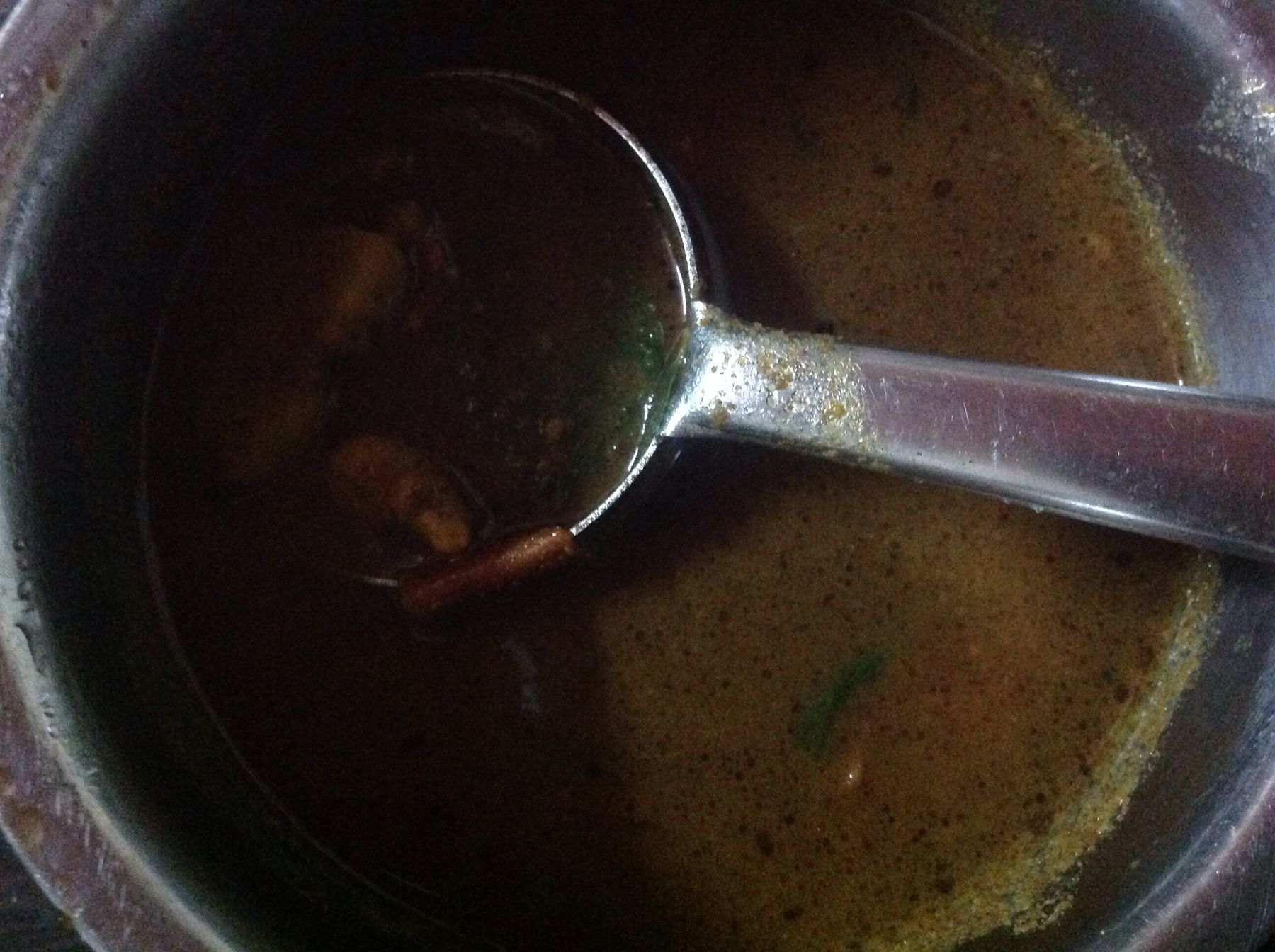 Now wash it water nicely. Then pour some oil and insert mussels along with Kashmiri chilly powder, turmeric powder coriander powder, green chilly, ginger, garlic,pepper powder salt and raw banana pieces for 3 minutes by closing the lid then add 5 cups of water to it. When it is boiled nicely add deep fried coconut and boil it by closing the the lid for 2 minutes by adding curry leaves and coriander leaves.