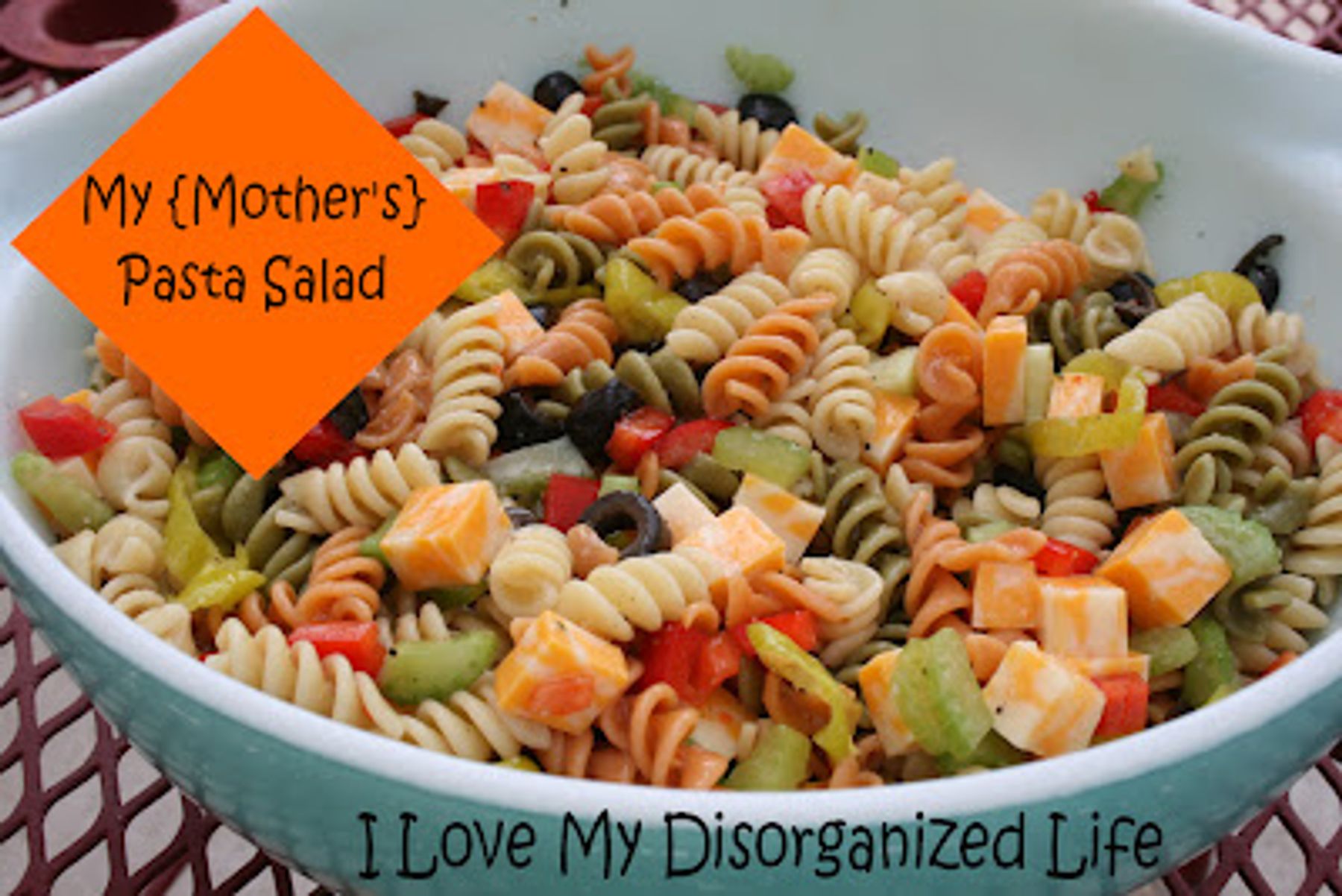 Cook the Rotini pasta according to package directions. Drain and rinse with cold water {this will stop the cooking process}. Combine in a large bowl with other ingredients and toss to mix well. Chill...