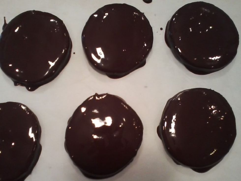 Heat oven to 350. Whisk flour, salt and cocoa in a bowl. Beat butter and sugar in standing mixer. Add egg, then peppermint extract, then dry ingredients. Dough will be a little stiff. Form 2 logs and roll in parchment paper. After a few rolls, use a 12" ruler to butt up horizontally against the dough and push, packing the dough more into a log. Continue to roll and when done, twist each end to condense dough even more. Refrigerate at least 2 hours Cut dough into 1/4" slices. Place sliced dough on a cookie sheet lined with parchment paper. These cookies will not spread. Bake for 10-12 minutes. You will want to err on the side of the max time, although you really can't tell if you have overbaked these cookies because they are so dark. They should just be cracking the tiniest bit on top, but longer baking time produces a crisper cookie, which is more like the traditional thin mint. Remove from oven and cool on a rack just until warm, but cool enough they won't break before putting the glaze over. It covers the cookie easier if the cookie is still warm. For glaze, in a small saute pan, melt chocolate on low heat, stirring constantly with heatproof rubber spatula. Add peppermint extract and blend completely. Line another cookie sheet with parchment paper. I take each cookie and hold between my forefinger and thumb and using a small spoon in the other hand, drop the melted chocolate over the cookie, turning all around so that glaze goes down all the sides as well. Place on cookie sheet to cool. If the glaze doesn't set up after awhile, put cookies in the frig.