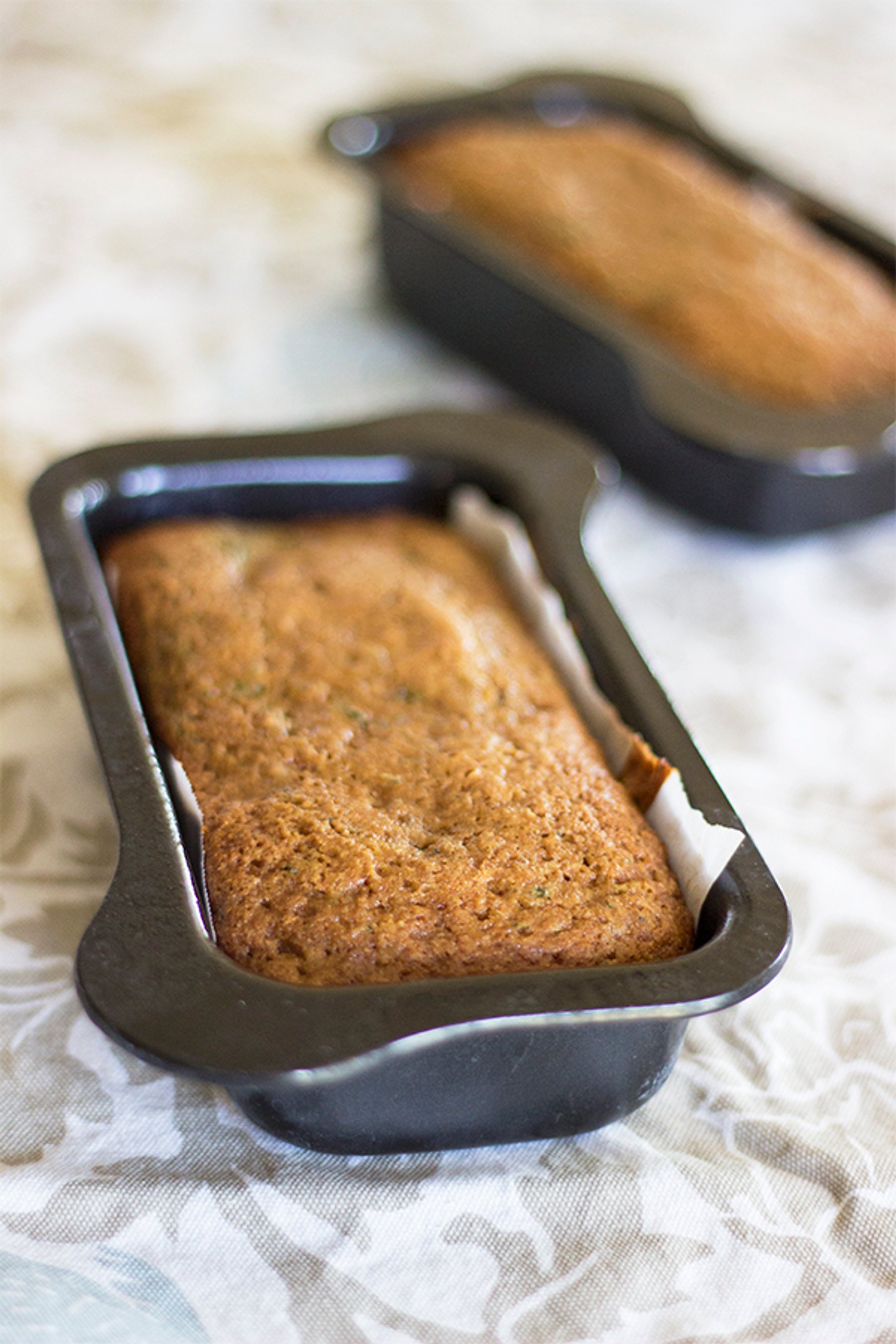 Pre-heat oven to 3205 degrees. Pour batter into greased and/or lined bread pans. This recipe will fill 4 mini bread pans or two 9 by 13 bread pans. Bake for about 32-36 minutes for the mini pans and 40-50...