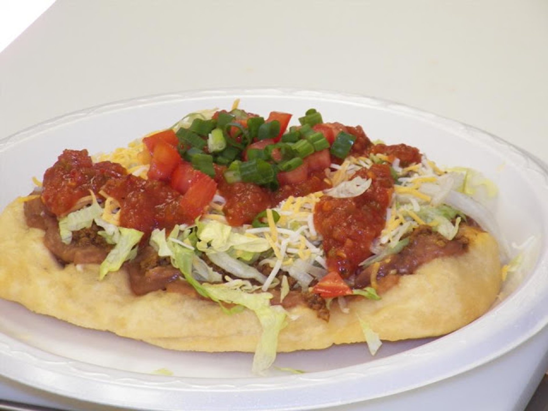 In iron skillet, heat 1/2 inch vegetable oil. Brown dough circles on each side and drain on paper towels. Serve with chile beans and your favorite taco toppings for "Navajo Tostados."