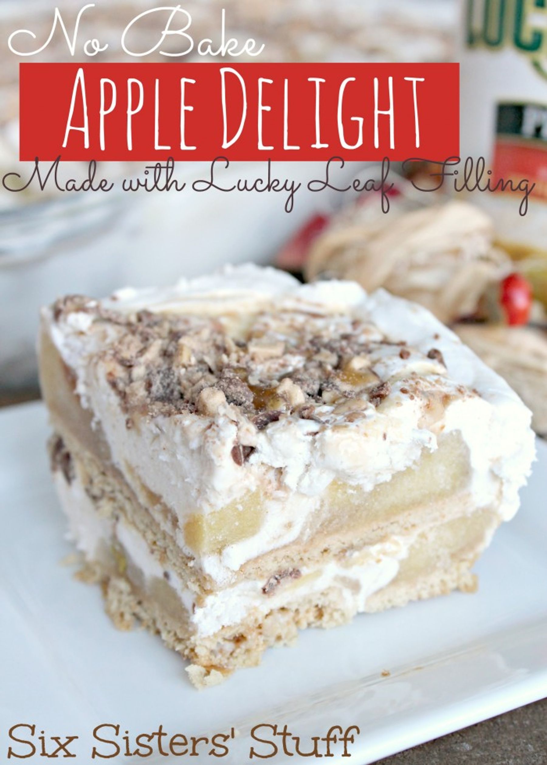 I absolutely LOVE Lucky Leaf products. My very favorite is there apple pie filling. The apples in the filling just taste AMAZING! I was playing around with it and came up with these No Bake Apple Delights. They turned out so delicious that my girls devoured their first piece and wanted more! (Love when that happens)