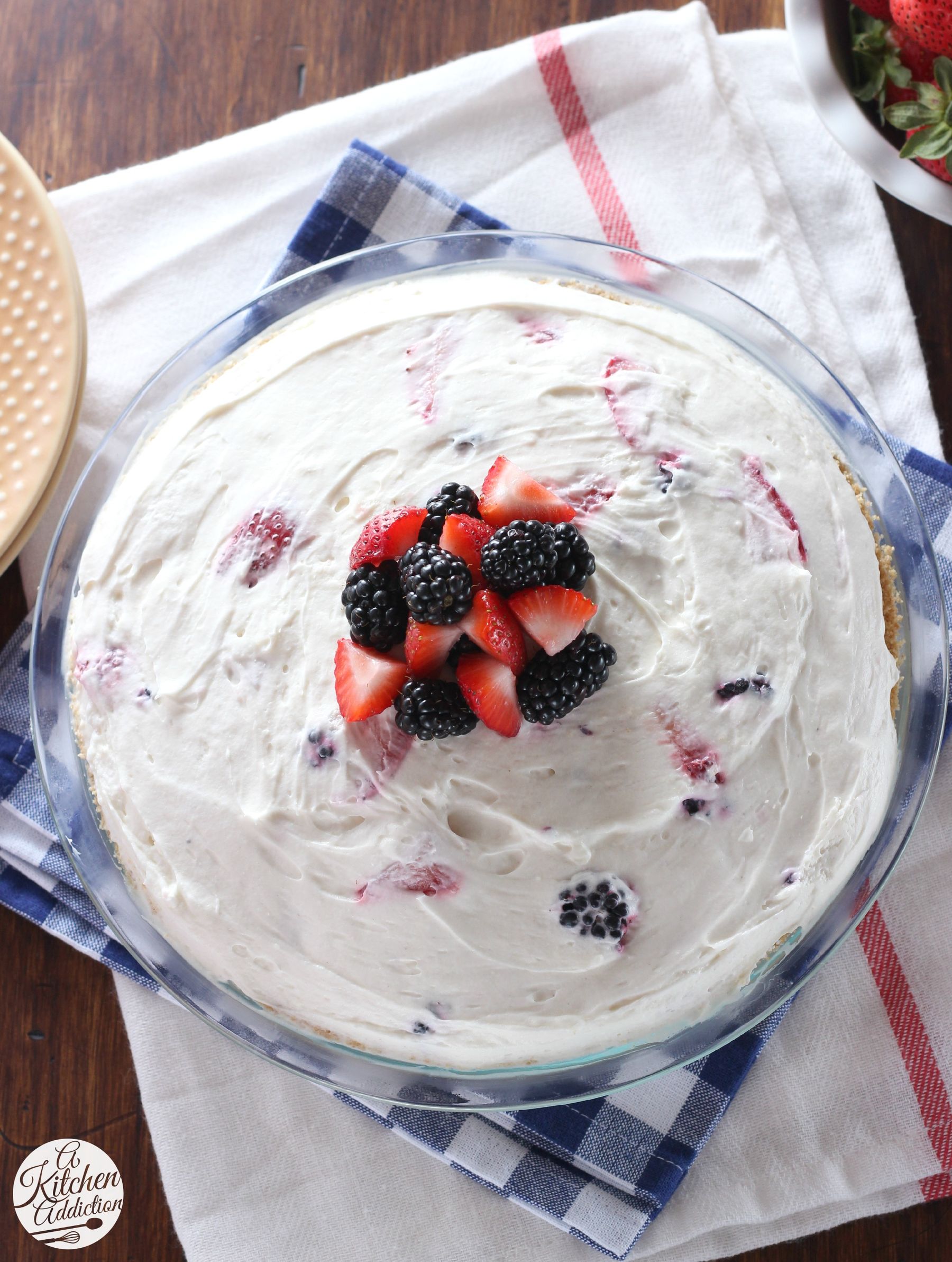 Light and airy cheesecake pie filled with sweet strawberries and blackberries!