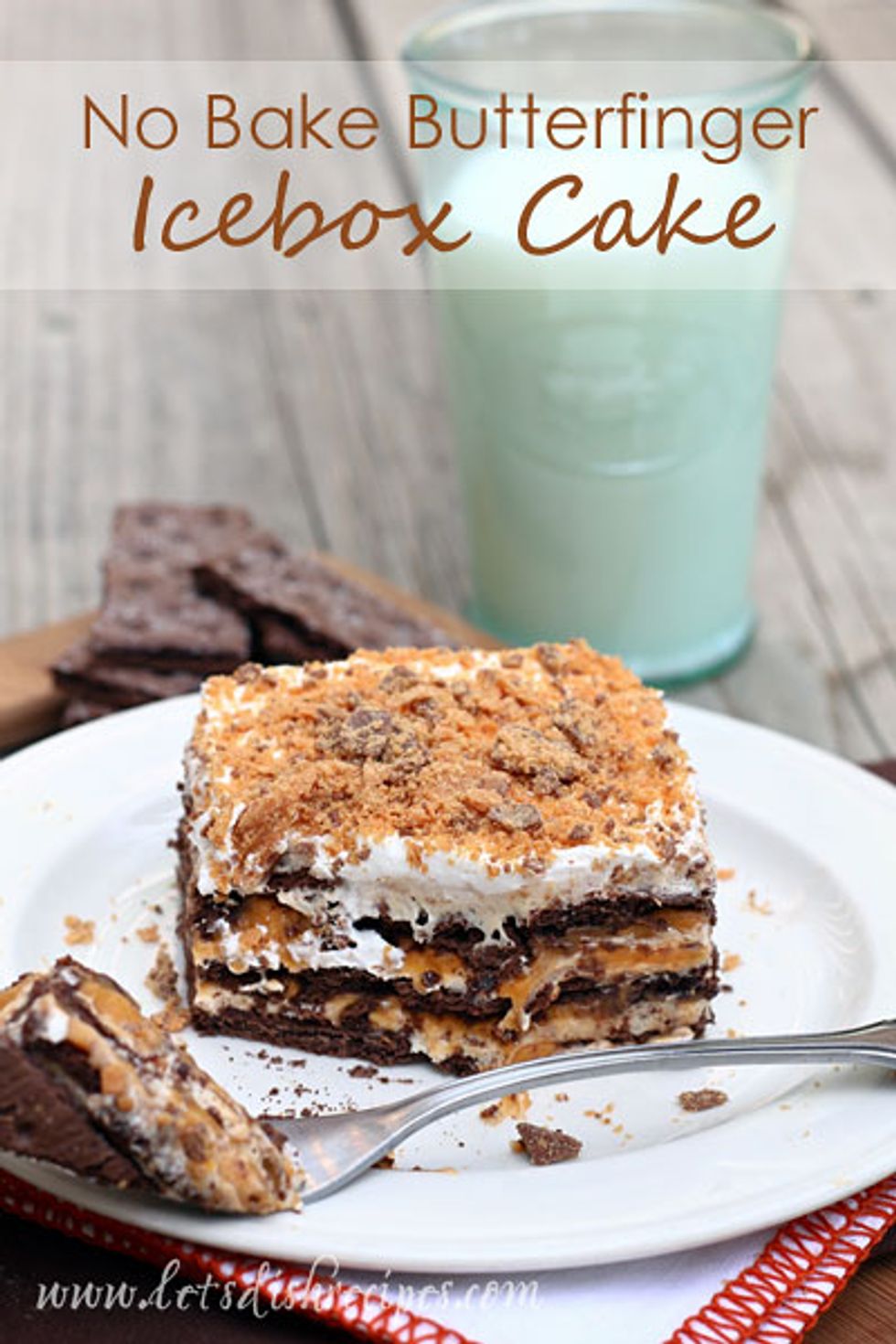 Layers of chocolate graham cracker, butterscotch pudding, cream cheese and Butterfinger make up this delicious, no-bake dessert.