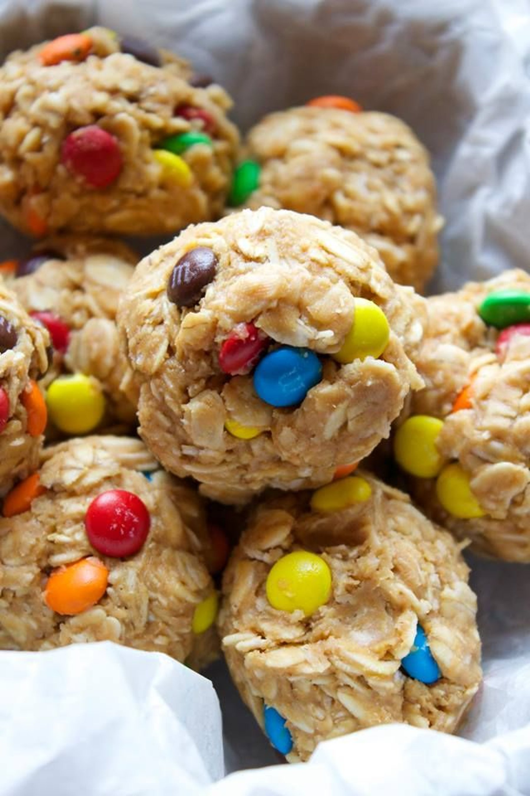 Mix the oats, honey, peanut butter and vanilla in a bowl until evenly combined. Add in the M&M's. Roll about 1 tablespoon of the mixture into a small ball and place on parchment paper. Repeat until all of...