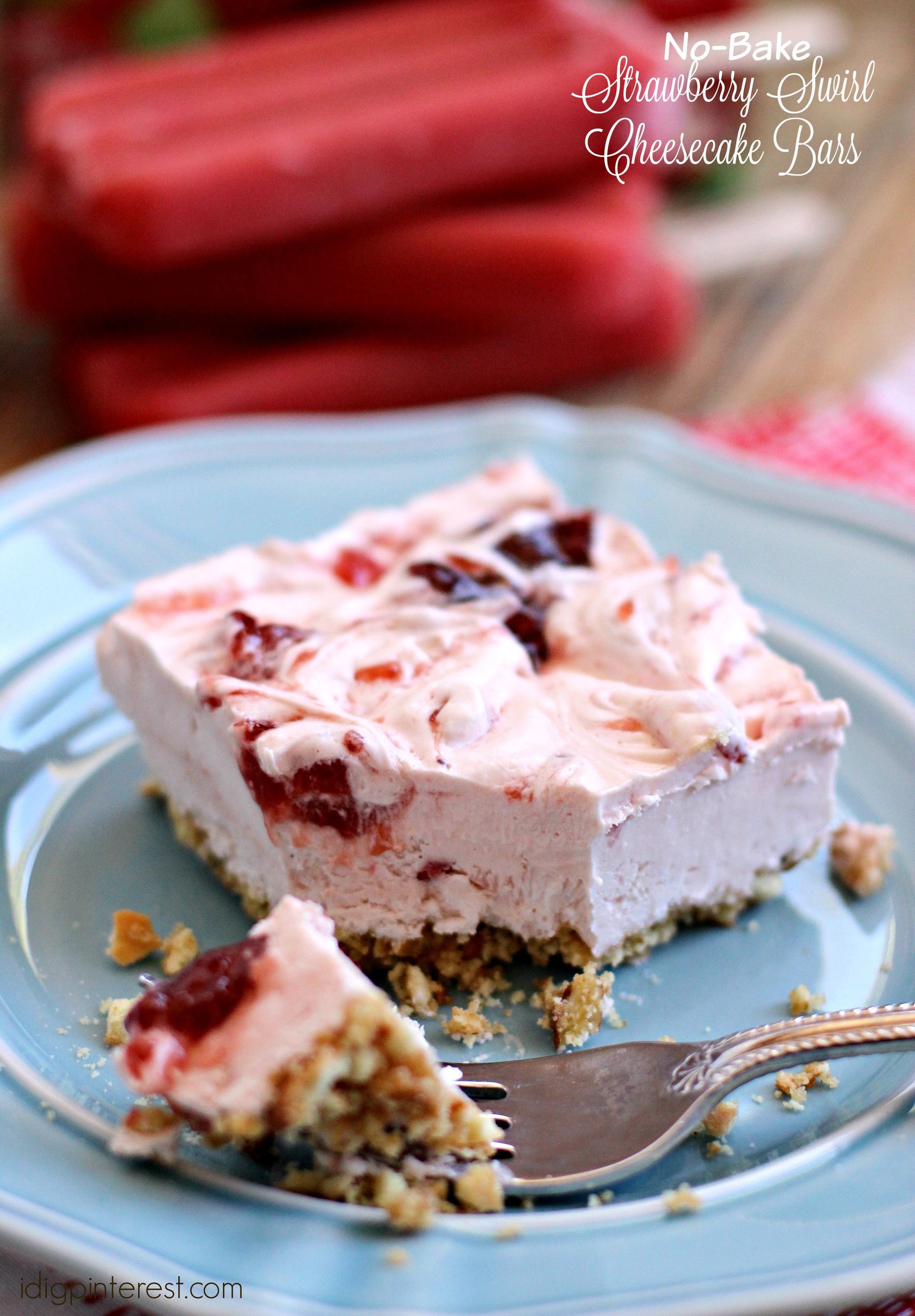 No-Bake Frozen Strawberry Swirl Cheesecake Bars