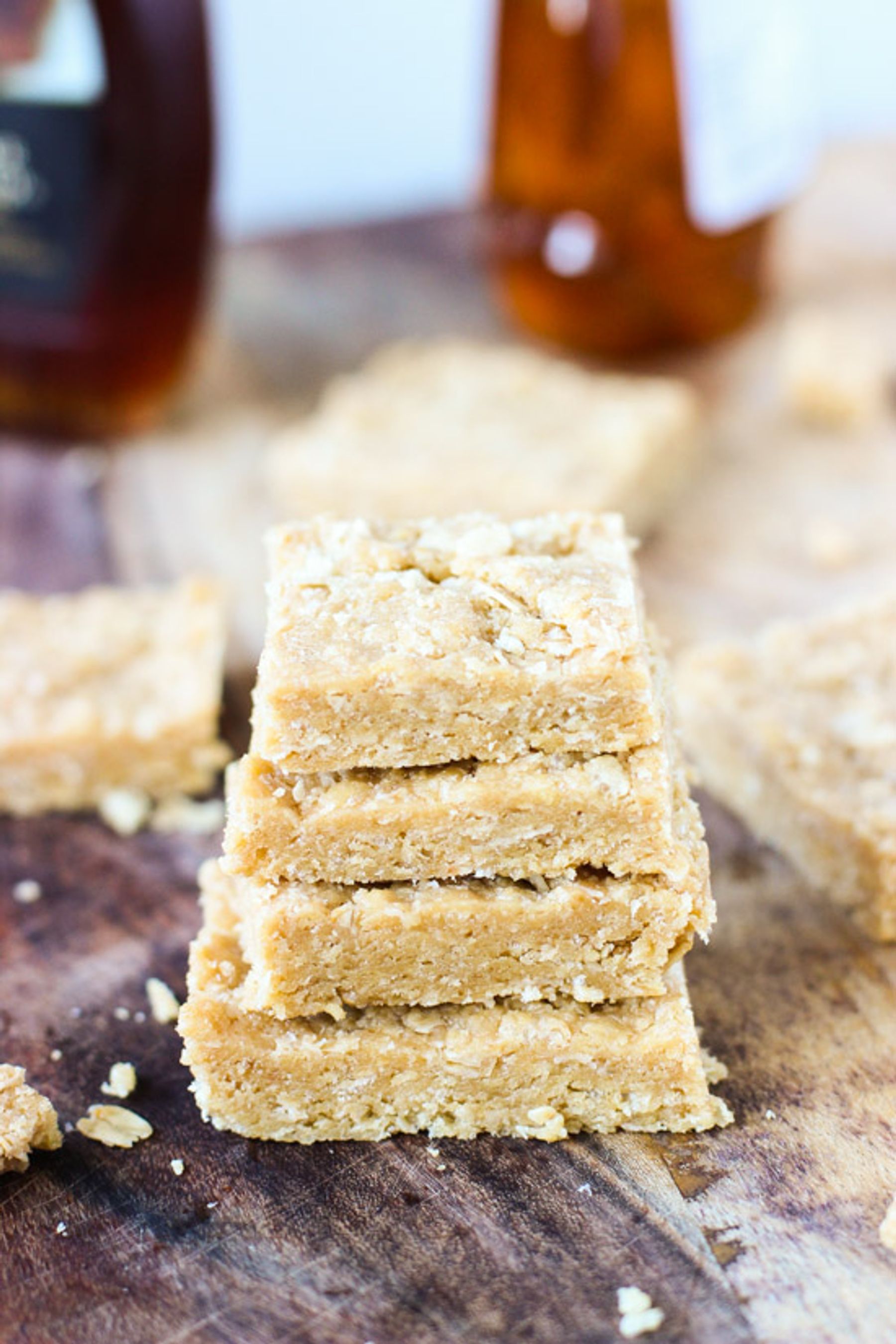 These chewy and crisp No-Bake Honey Maple Cashew Bars only use 6 ingredients and take 10 minutes to make!