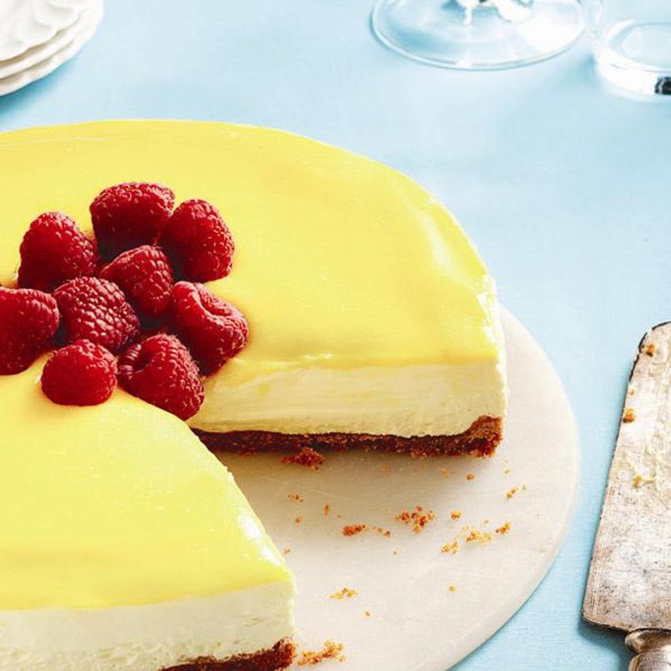 Beat mascarpone and cream cheese in a large bowl with electric mixer on high until fluffy, 3 to 4 min. Beat in 2 cups of cold lemon curd. Mix until combined, then pour over frozen crust. Smooth top. Freeze until top is firm to the touch, about 30 min. Spread remaining lemon curd over the top of the cheesecake and freeze for 6 hours or overnight. Let stand at room temperature for 1 hour before serving.