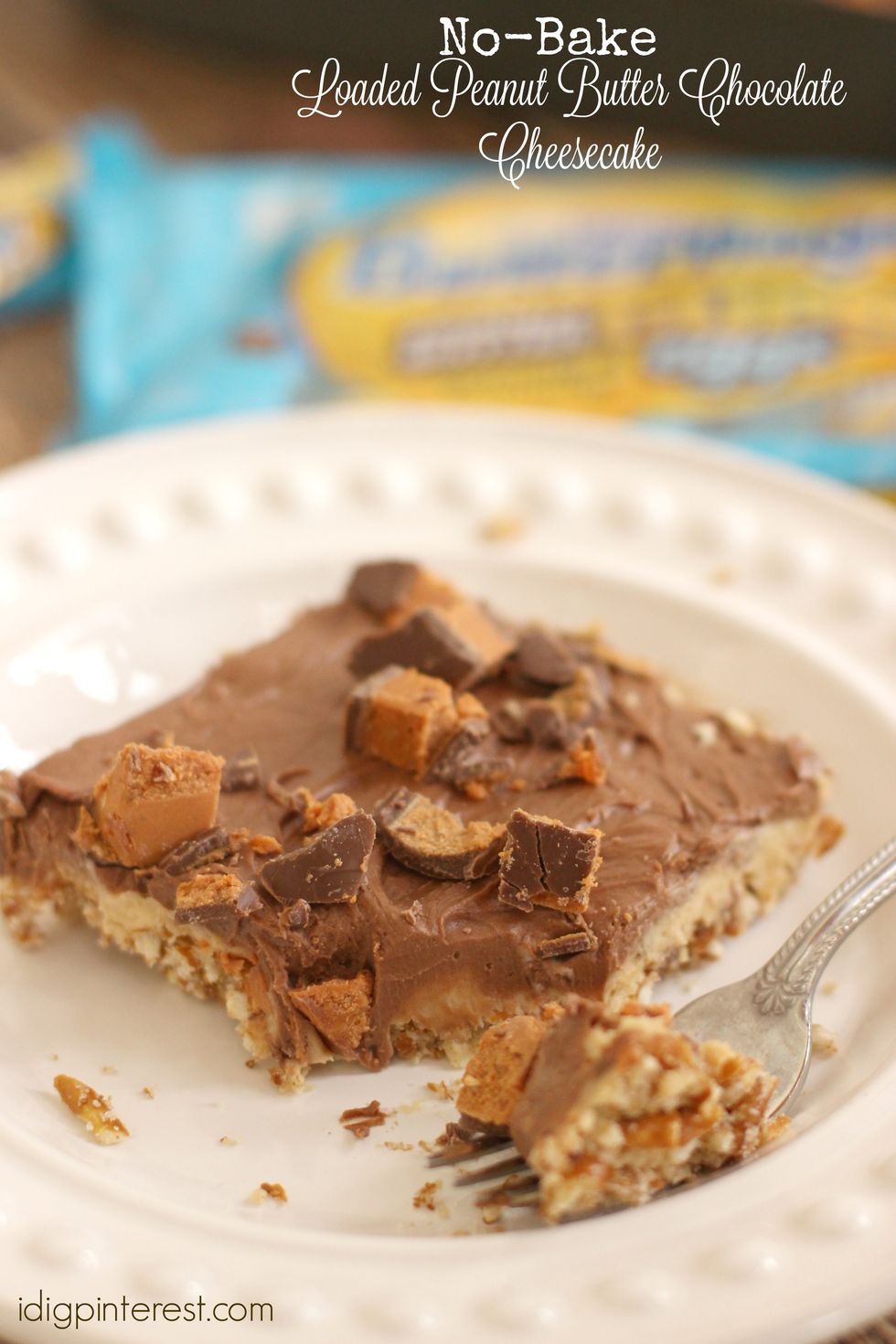 No-Bake Loaded Peanut Butter Chocolate Cheesecake