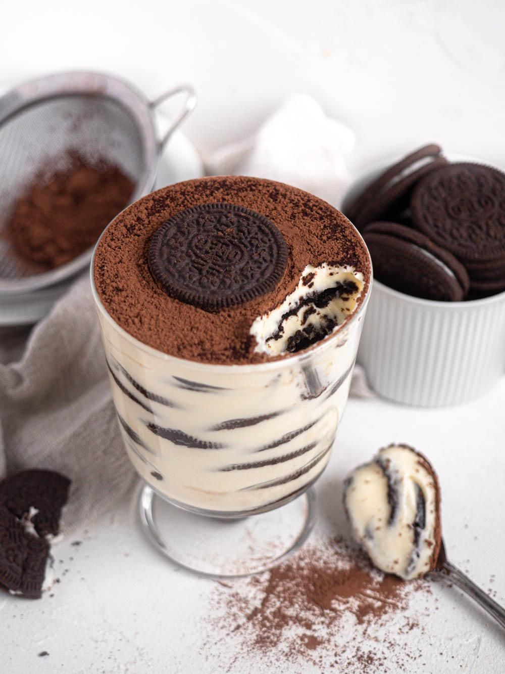 Full recipe here: https://zhangcatherine.com/oreo-tiramisu-parfait/