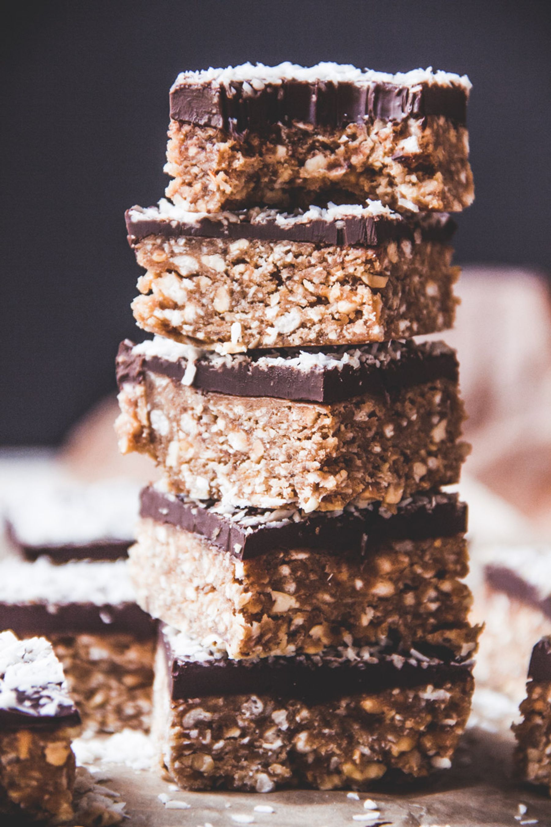 No-Bake Peanut Butter Coconut Chocolate Snack Bars - perfectly chewy and vegan!