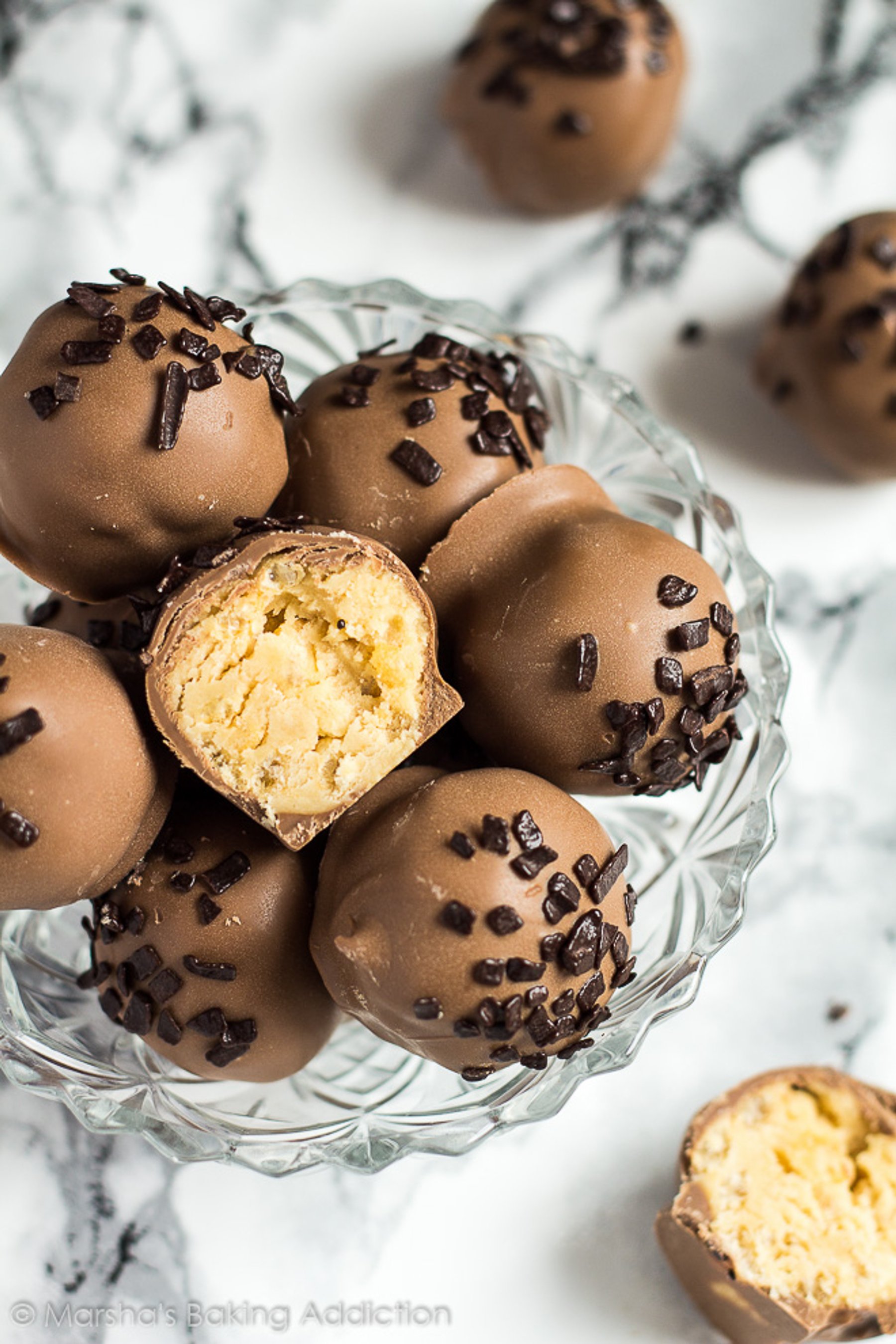 Deliciously creamy peanut butter balls loaded with crispy rice cereal, and coated in a chocolate shell!