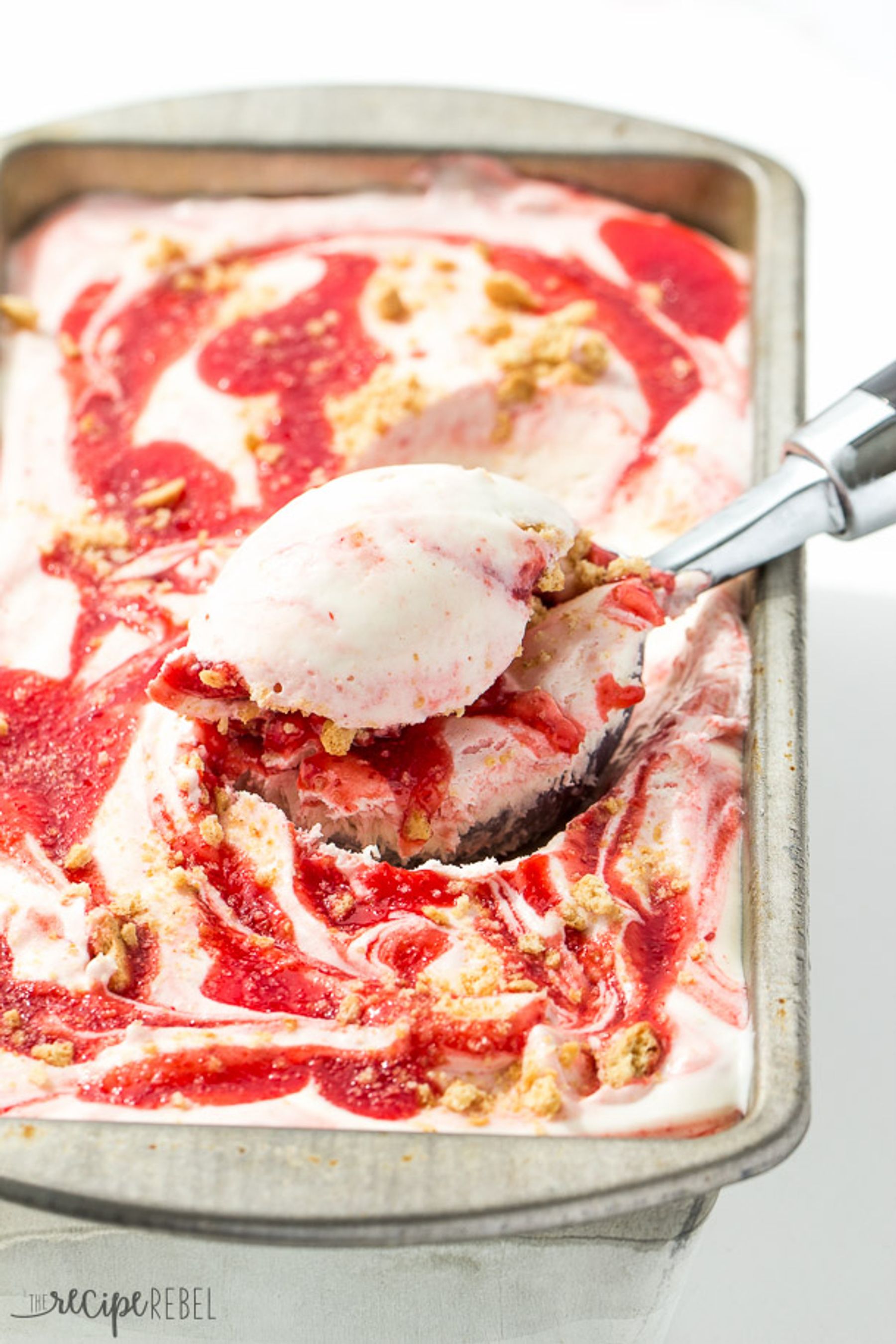 Smooth, creamy No Churn Cherry Cheesecake Ice Cream made with only 5 ingredients! Cherry Cheesecake ice cream was always one of my favorites growing up, and I think this homemade version is even better than the ice cream parlour! Mix up the pie filling flavor to easily customize.