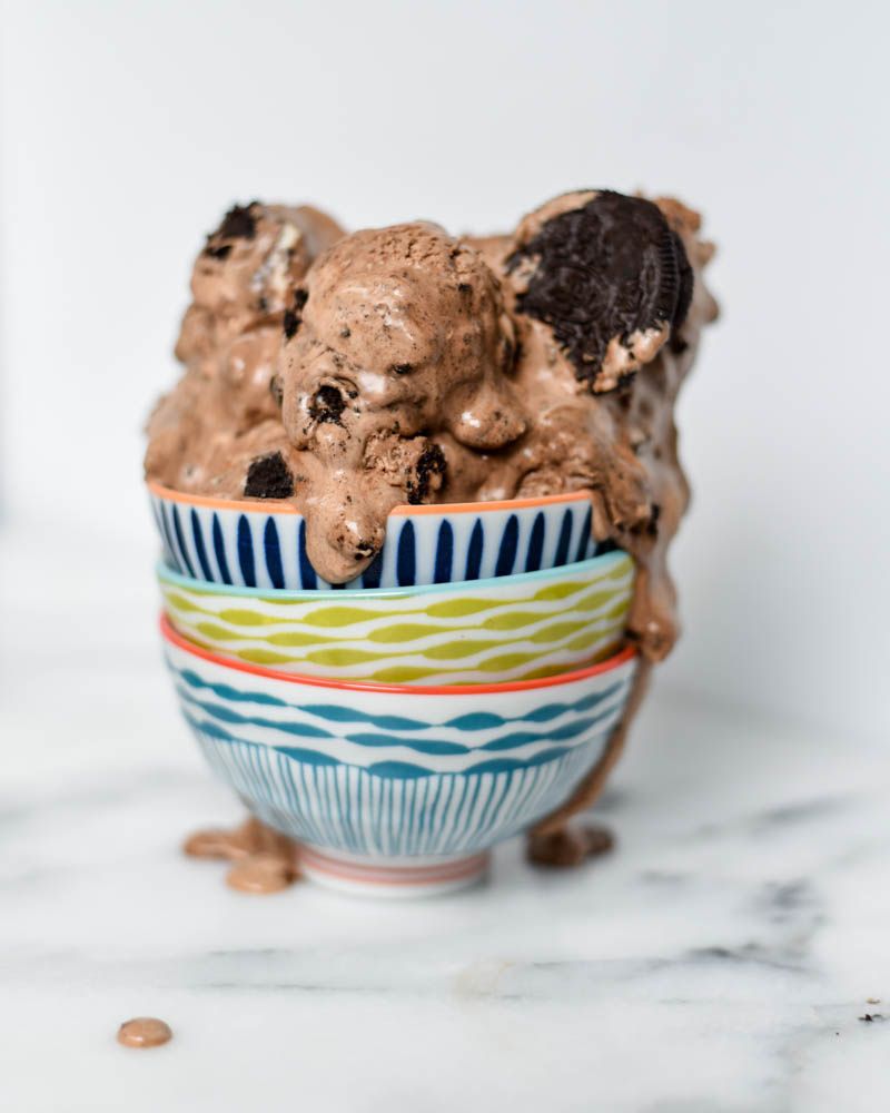 - Whip the heavy cream until soft peaks form. Add in the powdered sugar and beat until fully incorporated. Fold in the sweetened condensed milk, followed by the Oreos.