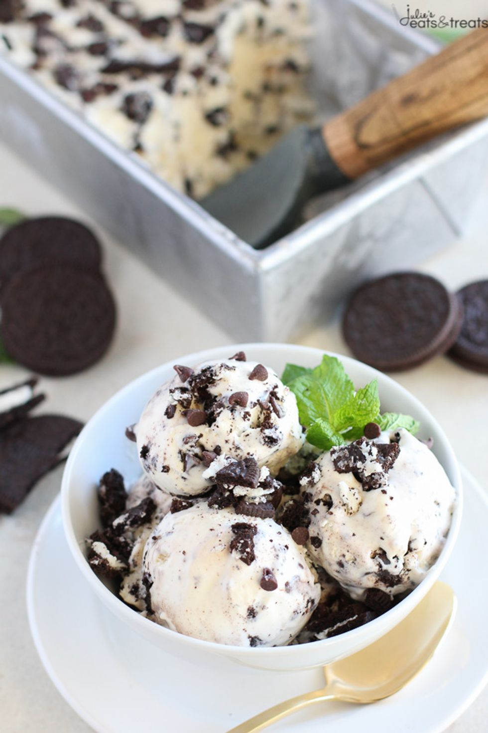 No-Churn Mint Chip Cookies and Cream Ice Cream