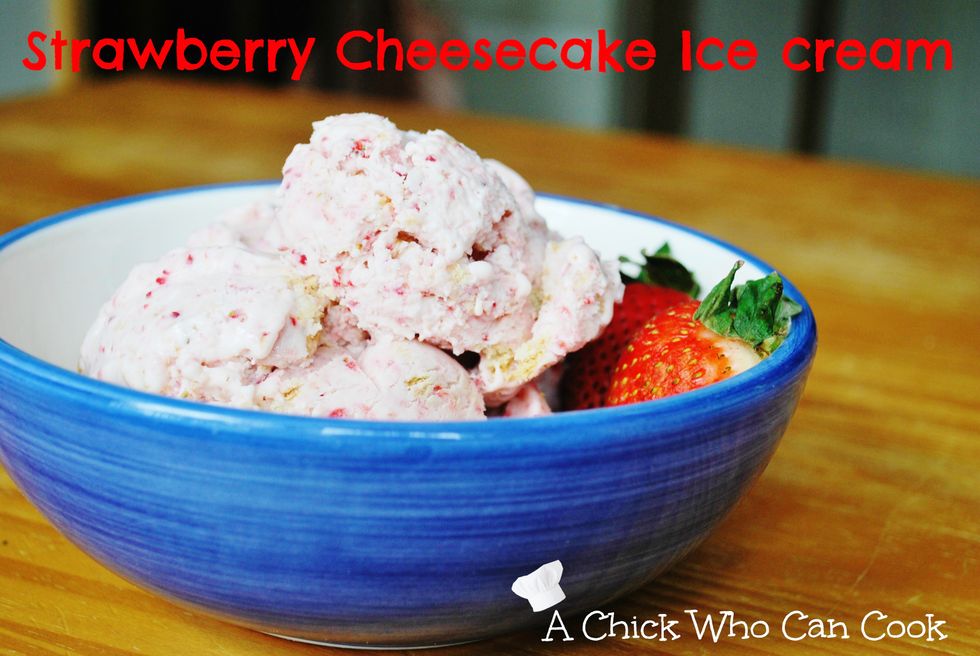 I have always wanted to make my own ice cream but I don't own an ice cream maker so you kinda see my dilemma but then one day on the back of a cream cheese box behold I found this recipe! You have to make this in advance like the night before because it does have to freeze for 8 hours It is creamy, delicious and it tastes just like the dessert!! But when it is all done prepare yourself for the best tasting strawberry cheesecake ice cream you have ever had in your life and then pat yourse
