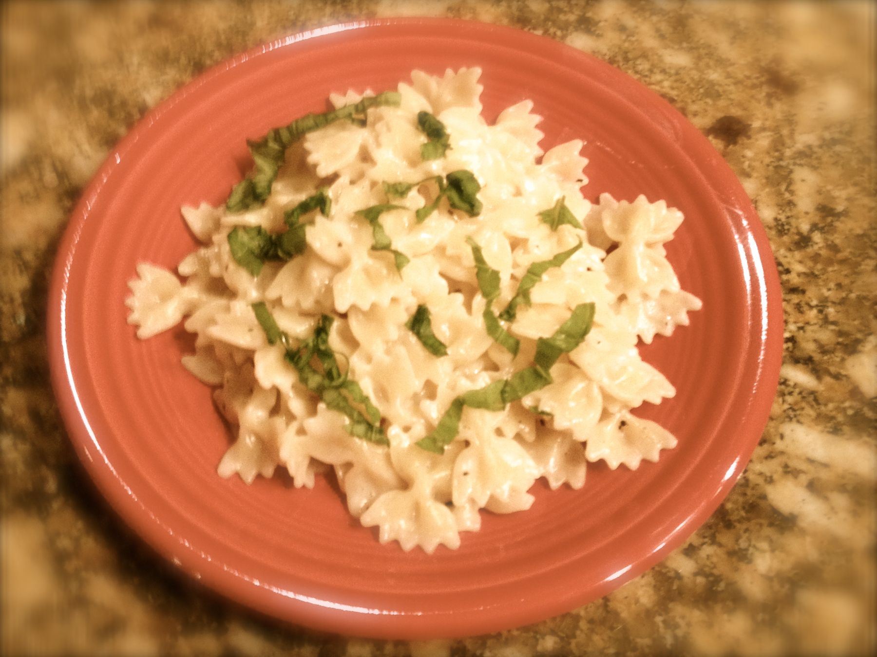 This not as guilty alfredo has lots of cheesy flavor with just enough creamy feel on your tongue without making you feel weighed down after eating it. If you use whole wheat pasta, zucchini ribbons or butternut squash, you will boost the healthy factor even more. It is very easy to put together in only the time it takes for the pasta to cook. I compared this recipe to a full fat version for nutritional analysis and this one has 237 calories with 7 grams of fat vs. 356 calories with 19.3 grams