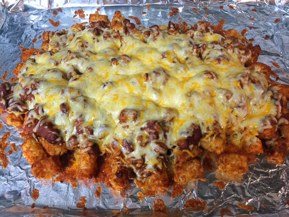 Fast and easy chili cheese fries using tater tots instead of french fries.
