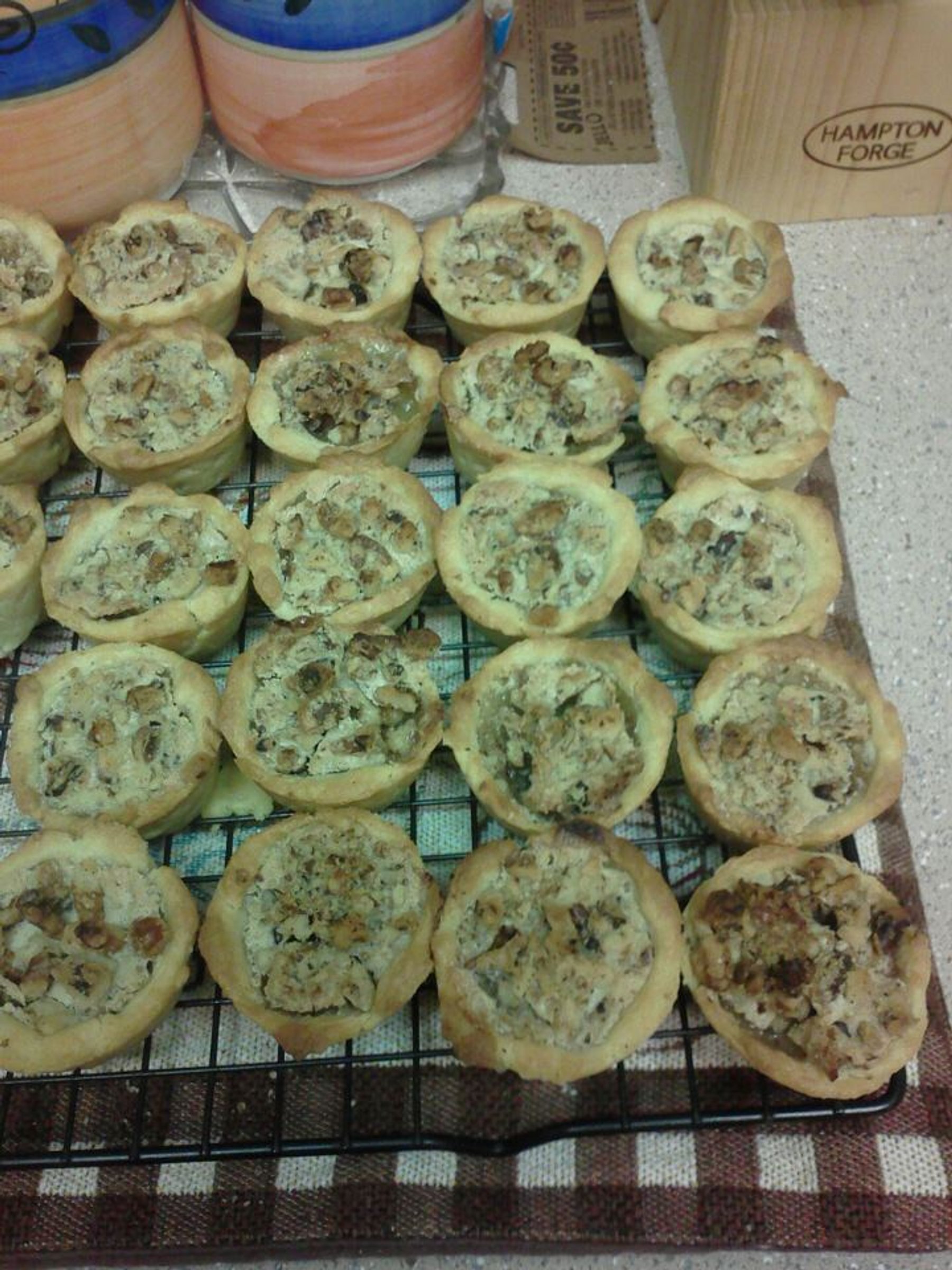 Combine flour, butter and cream cheese. In separate dish combine eggs, sugar, butter and vanilla for filling. Put dough in small cupcake tin and put 1tsp of filling and 1tsp of nuts inside dough. Bake at...