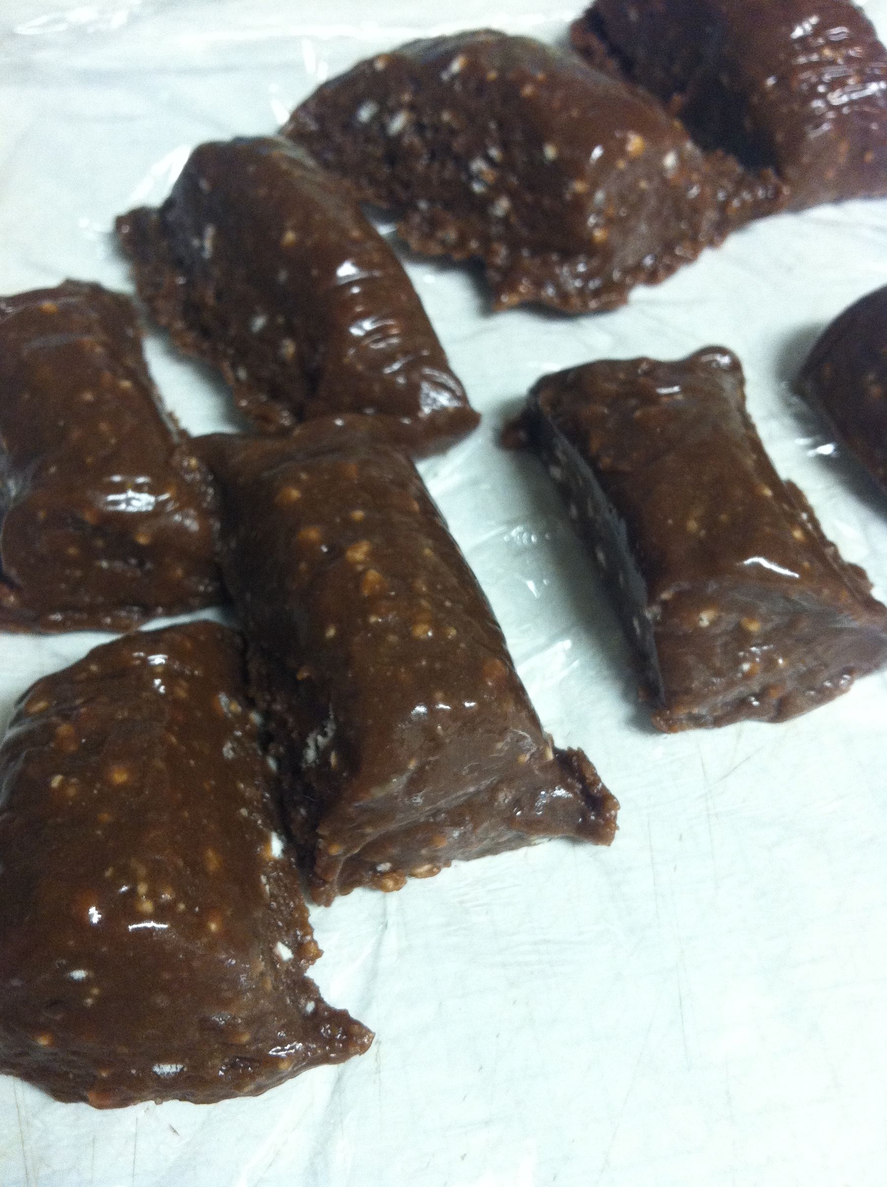 Divide into 24 individual pieces and wrap each one in plastic wrap or wax paper.