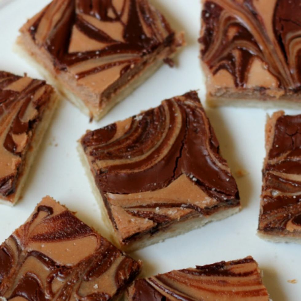 Oh so fabulous Nutella® hazelnut spread swirled in cheesecake atop a buttery shortbread crust! Perfect balance of sweetness in a snack or dessert!