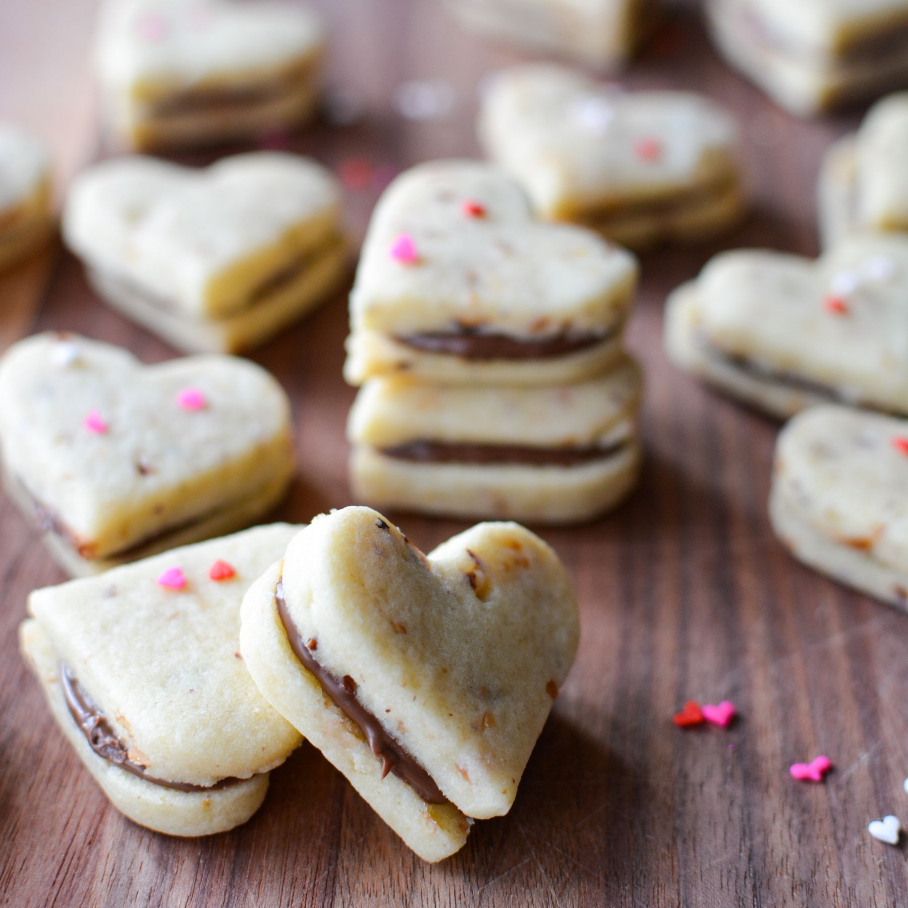 Creamy nutella is sandwiched between two hazelnut butter cookies