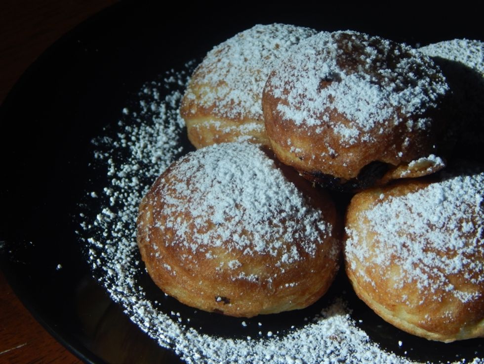 Pancake pillows filled with a delicious hazelnut spread and sprinkled with powdered sugar. This recipe is great for breakfast or dessert.
