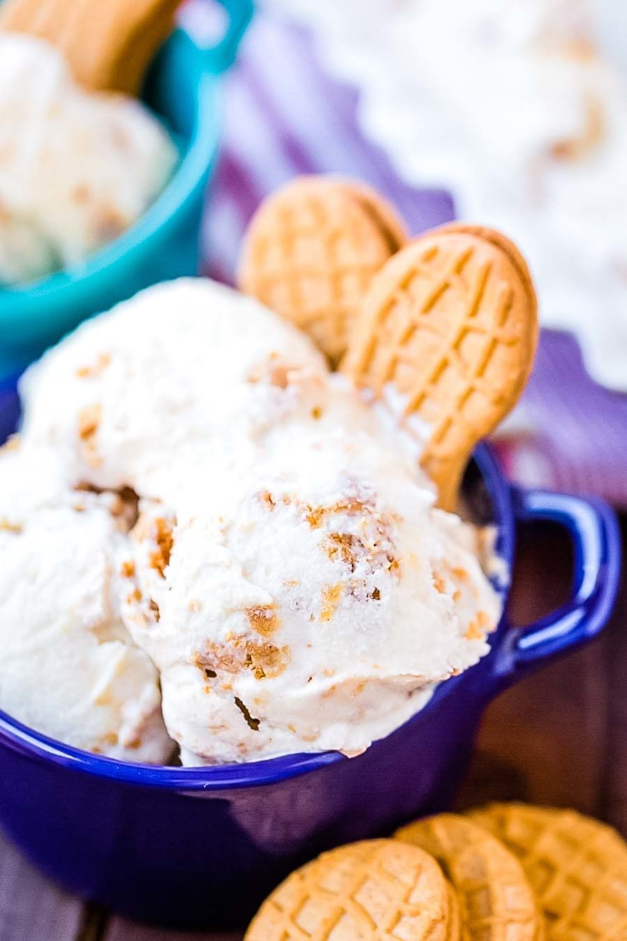 Nutter Butter Ice Cream is an amazing homemade peanut butter ice cream with chunks of Nutter Butter Cookies! This homemade ice cream recipe is creamy, smooth and amazing. You will want to make this today and then save some in your freezer for later this summer. It's the perfect treat to have in your freezer so you can enjoy it on a hot summer day.