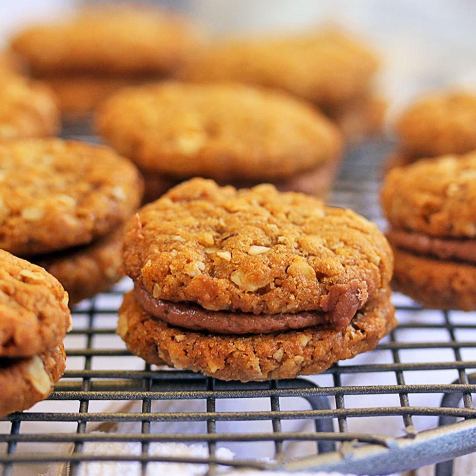 Oat and Hazelnut Yoyo Cookies by Sugar Salt Magic. A perfect combination of chewy and crispy cookies stuffed with Nutella frosting.