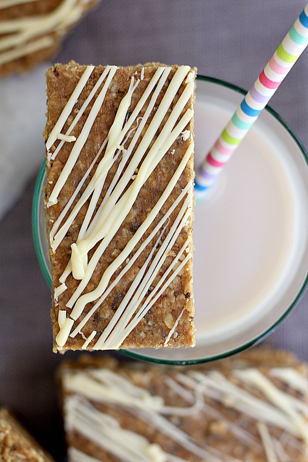 No baking required in these vegan homemade granola bars! These healthy bars take only a few minutes to make and the result is a chewy, soft bar that tastes like an oatmeal cookie! A perfect snack or breakfast for the on-the-go moments.