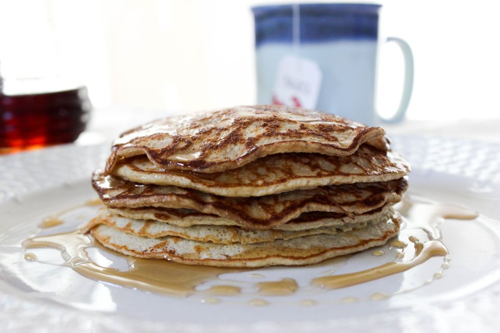 These pancakes are sure to give you energy til lunch! With a secret high protein ingredient, you'll be surprised that these taste like they are straight from a mix