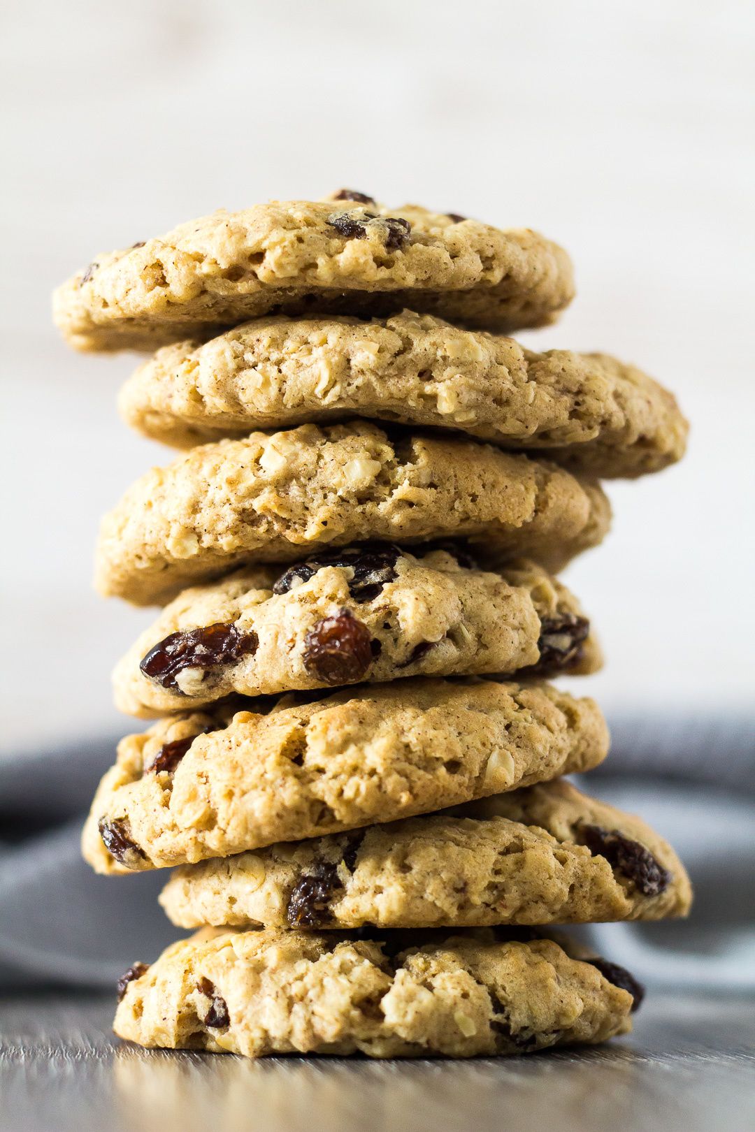Deliciously thick and chewy oatmeal cookies that are perfectly spiced with cinnamon and nutmeg, and loaded with raisins!