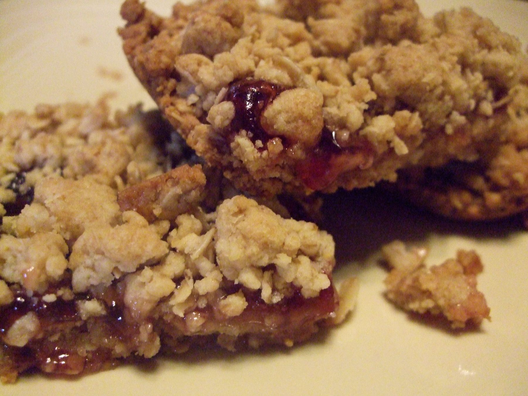Raspberry jam sandwiched between delicious oatmeal cookie dough.